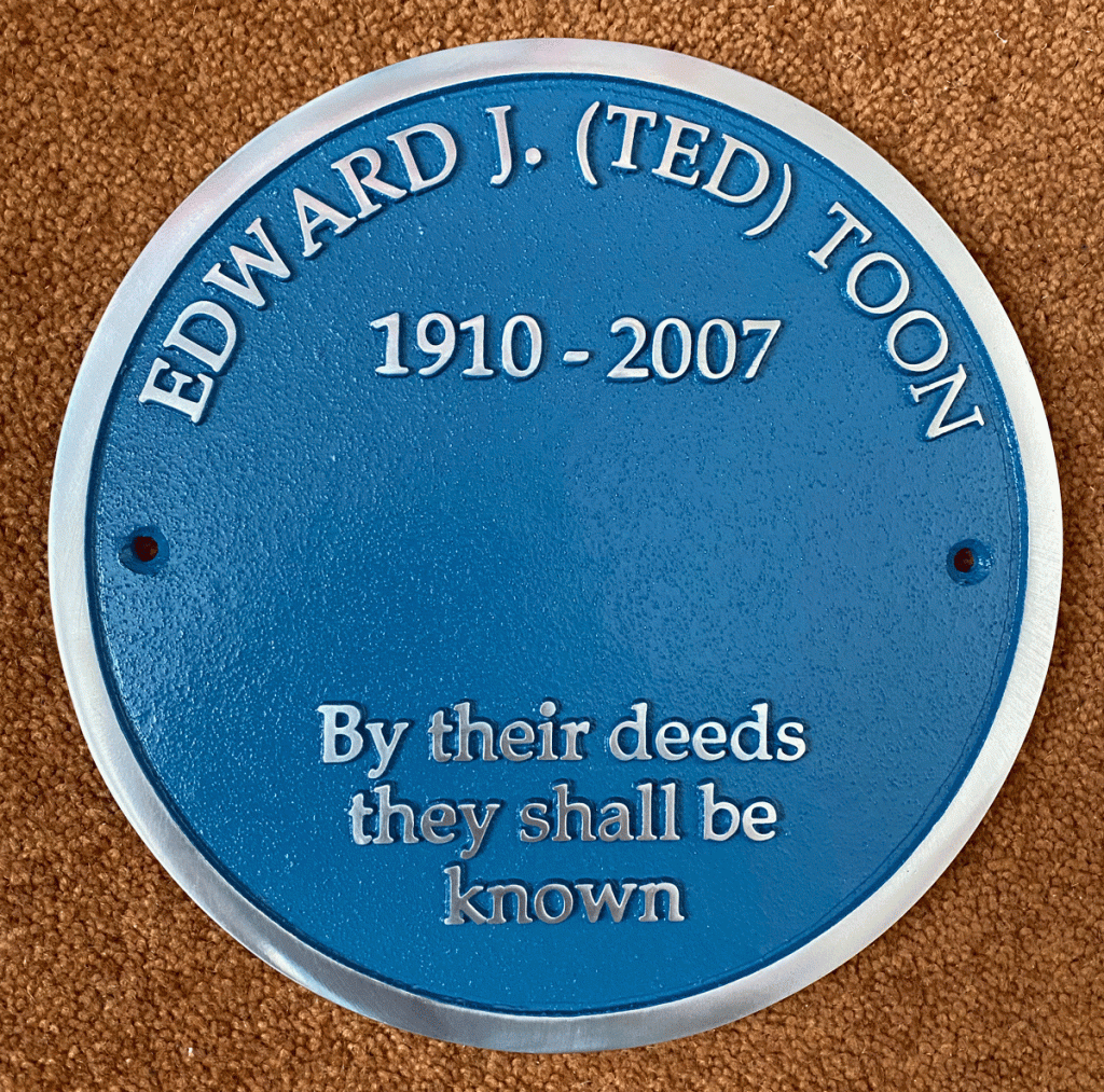 Former Uppingham undertaker Edward J Toon is to be recognised by the charity he created in his name with the mounting of special plaque in his honour. The E J Toon Charitable Trust is to temporarily locate the plaque, donated by Ted’s last apprentice and Executor Gerald Badley, in a town centre position. Once completed, the ‘affordable housing for young people’ orchard site in Seaton Road will become its home. The Seaton Road orchard site was originally owned by Mr Toon.